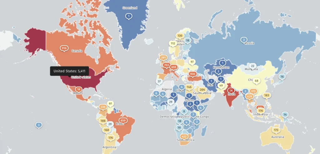 Aujourd’hui, Shadowserver a déclaré qu’il suivait plus de 25 000 adresses IP avec une empreinte SSO FortiCloud, plus de 5 400 aux États-Unis et près de 2 000 en Inde.